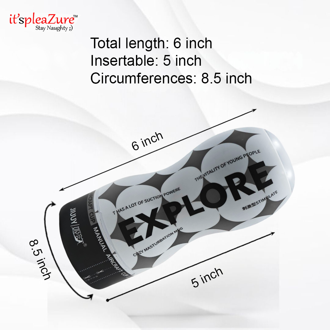 The It'spleaZure's Explore Masturbating Cup is designed to deliver intense pleasure with its powerful suction and ergonomic design. Made from ultra-soft, body-safe TPE material, this masturbation cup offers a realistic and exhilarating experience. Its compact and discreet form makes it ideal for personal use, while the textured interior ensures maximum stimulation.